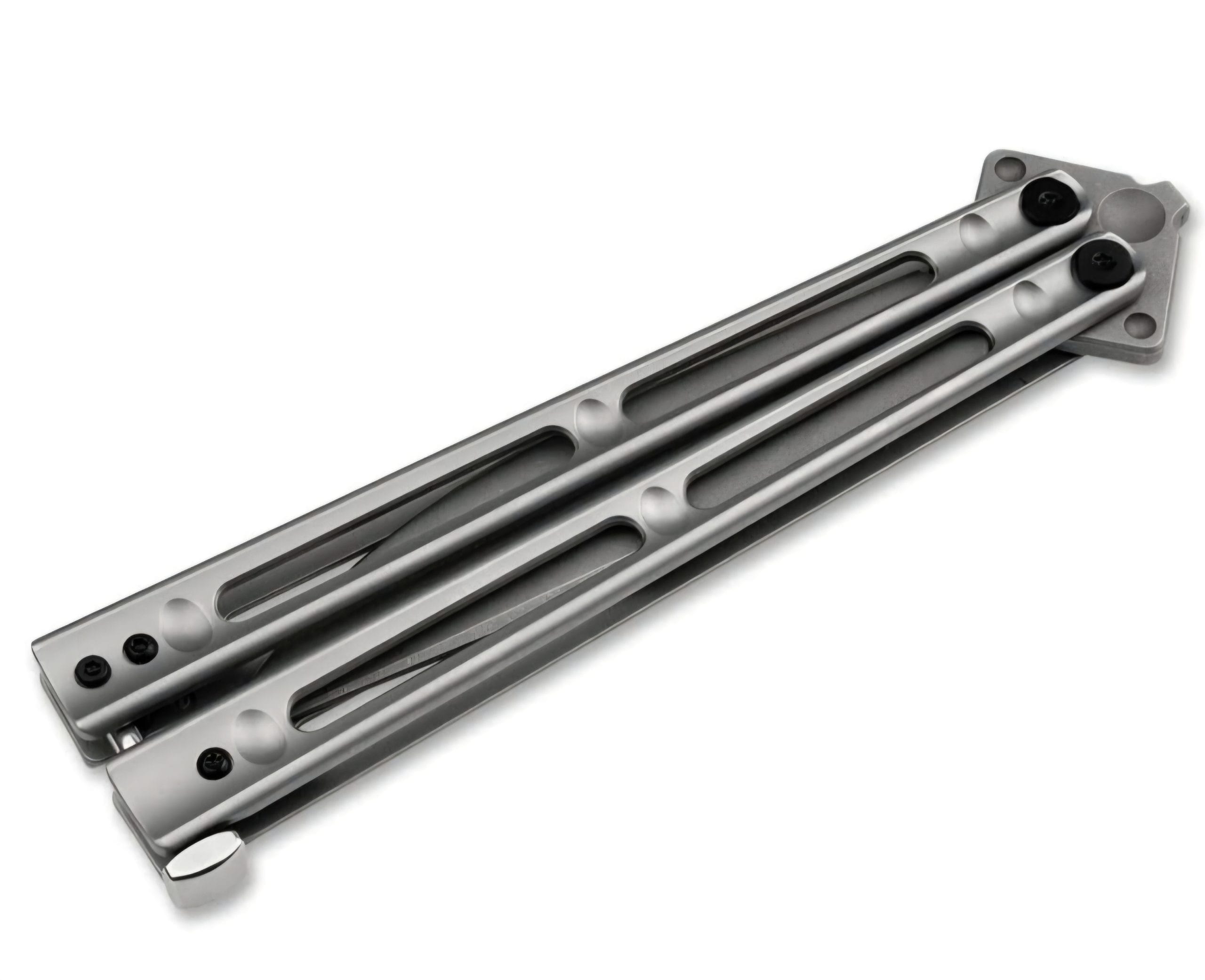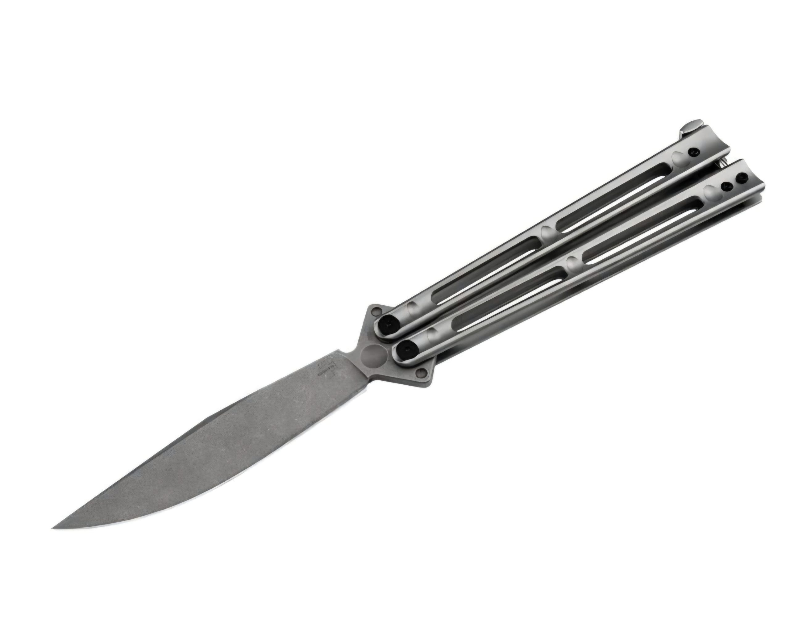 Experience the artistry of precision with this fully grown Balisong pocket knife. With an overall length of 10.20 inches and a blade length of 4.57 inches, it’s designed to impress. The D2 steel blade, featuring a matte stonewash finish, ensures durability, while the skeletonized stainless steel handle provides a sturdy grip with a sleek matte beadblast finish.