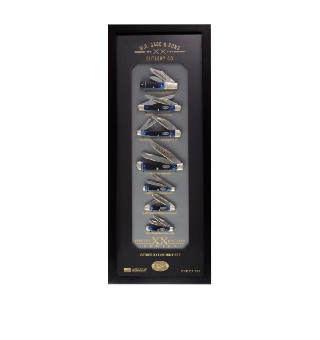Housed in a beautifully crafted wood and glass display case, this collection is ideal for both avid collectors and those just beginning their journey with Case Knives. Enhance your collection with this remarkable homage to American craftsmanship!