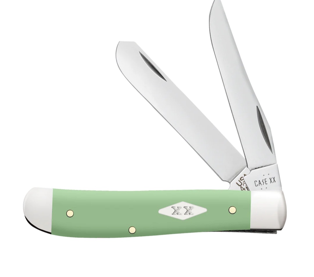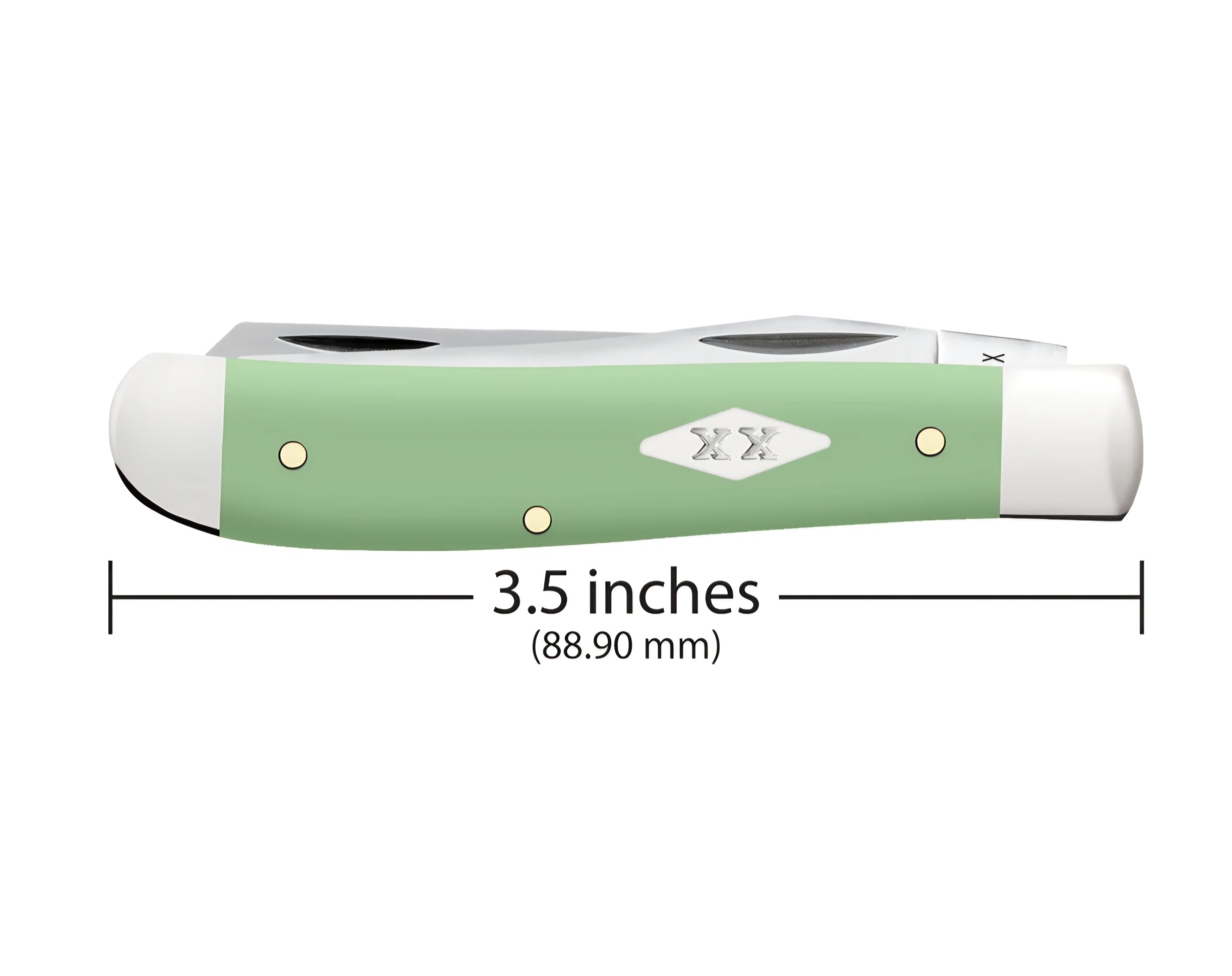 The Case XX Mint Green Smooth Synthetic Mini Trapper combines classic Case craftsmanship with a fresh, modern style. Built to the same high standards that have defined Case for more than a century, this pocket knife is both a dependable everyday tool and a standout collectible. The Mini Trapper pattern is a longtime favorite among outdoorsmen, collectors, and EDC users for its practical size and versatile twin-blade design.