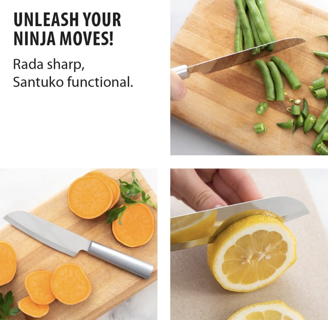 Why choose Rada’s Cook’s Utility? The surgical-quality, T420 high-carbon stainless steel blade is hand-sharpened to a razor-sharp edge, ensuring durability and precision. Plus, the Quick Edge Knife Sharpener makes at-home sharpening a breeze!