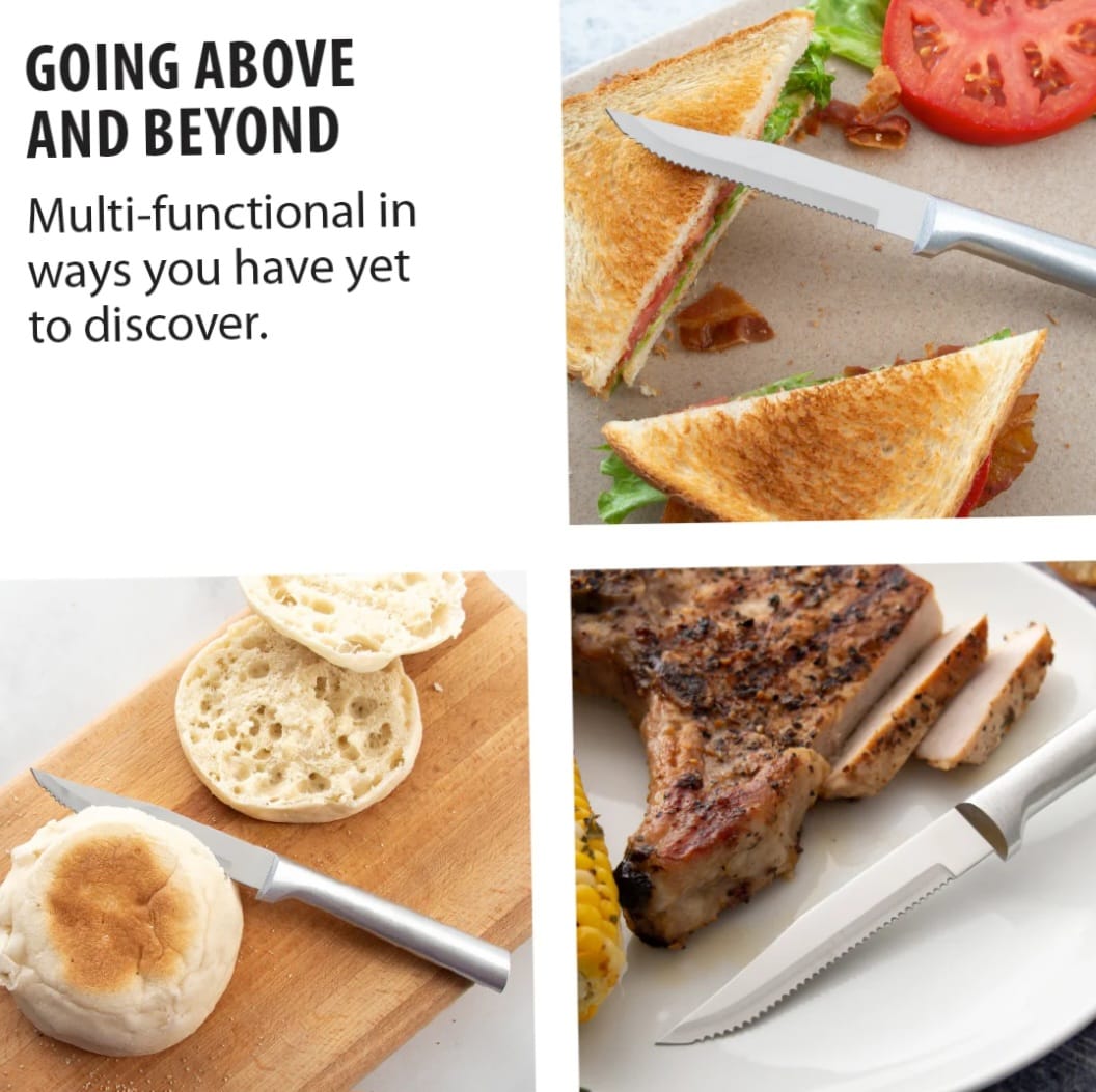 Rada Cutlery serrated Steak Knife – Silver Brushed Aluminum Handle